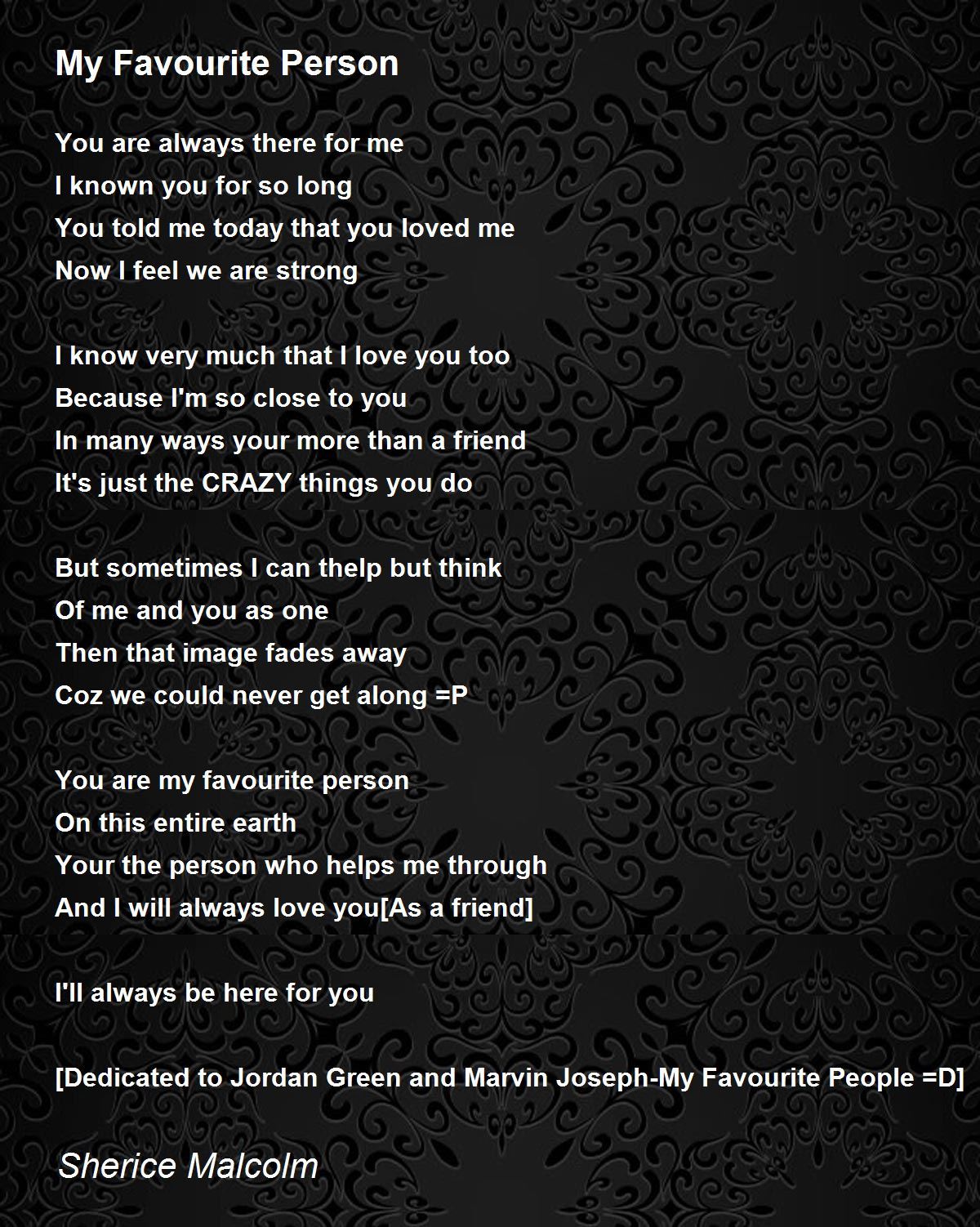 You are my favorite person poem. We did not find results for: Maybe you would like to learn more about one of these? Check spelling or type a new query.