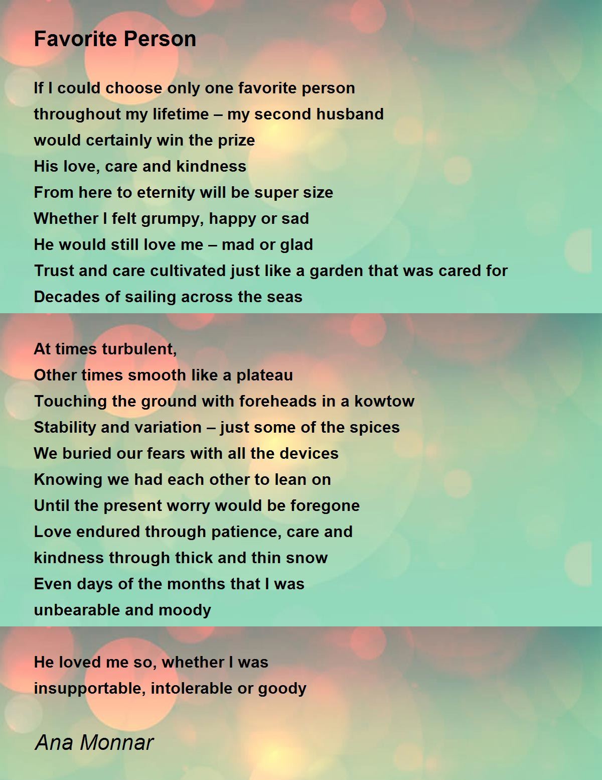 You are my favorite person poem. Check spelling or type a new query. We did not find results for: Maybe you would like to learn more about one of these?